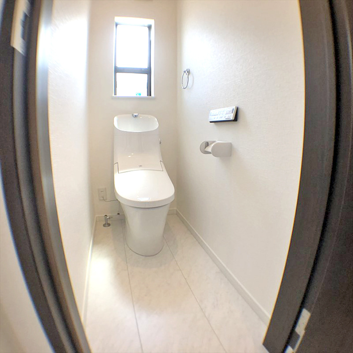 清潔感のあるトイレにも窓付きで、空気やニオイがこもるのを防いでくれます