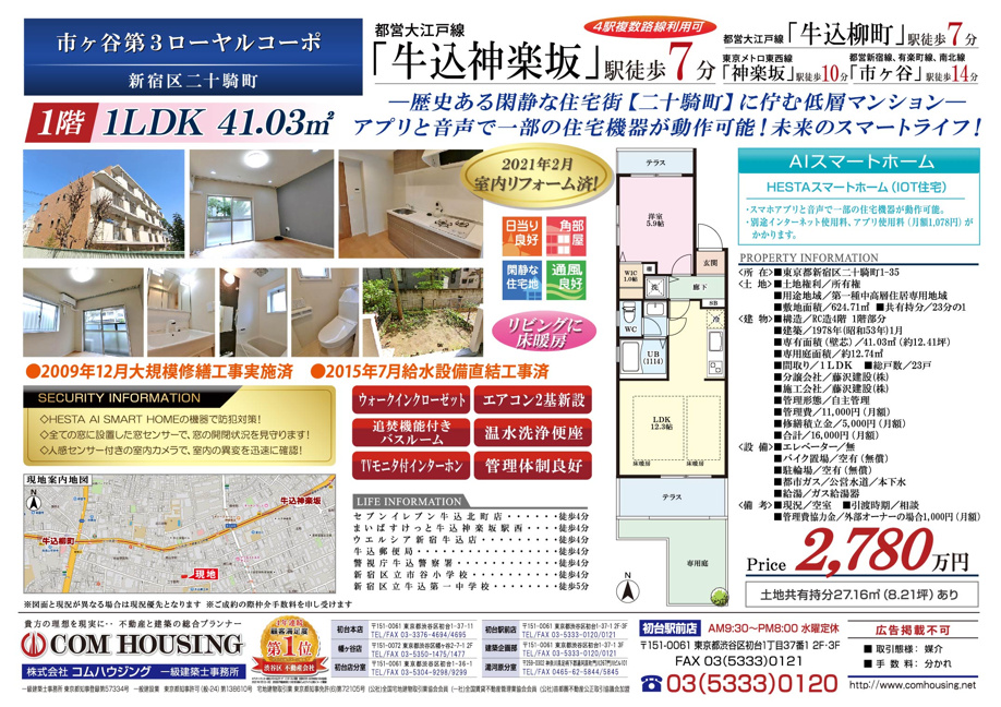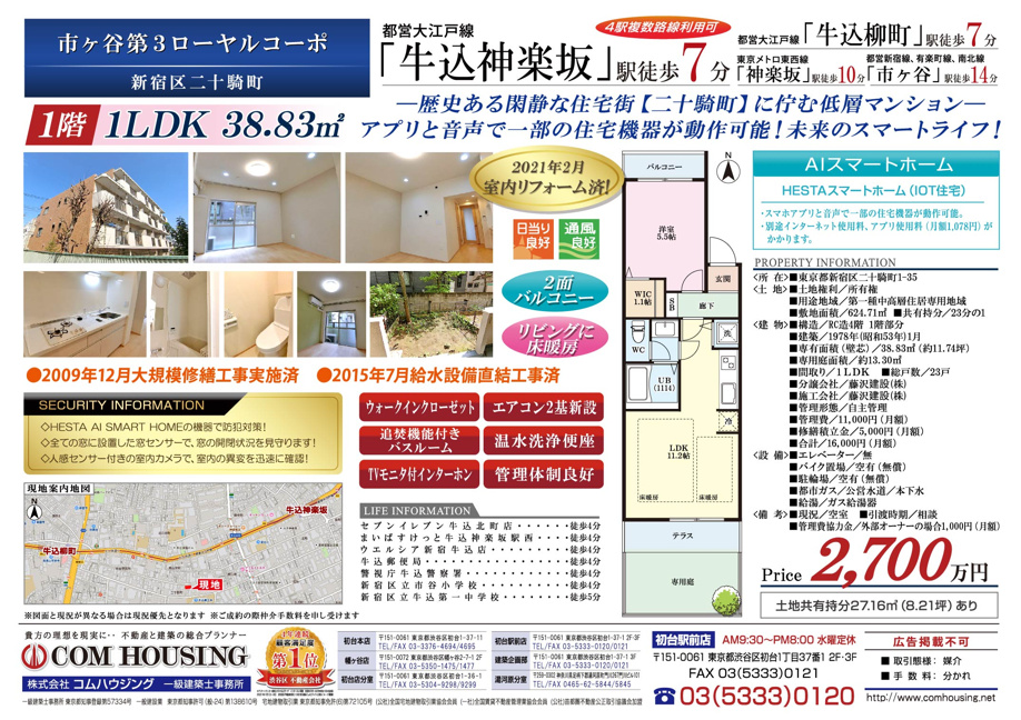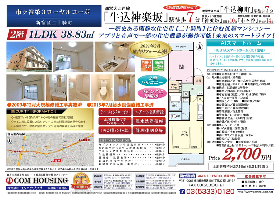 コムハウジング > 株式会社コムハウジングのスタッフブログ記事一覧 > 【成約御礼】市ヶ谷第3ローヤルコーポ