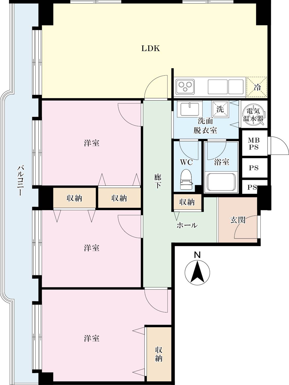 ■間取り:3LDK+専用トランクルーム(約4帖)