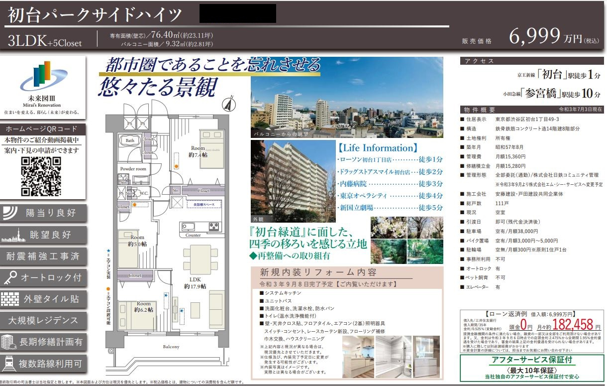 本日、京王新線「初台」駅徒歩1分のマンション、「初台パークサイドハイツ」をご契約いただきました。