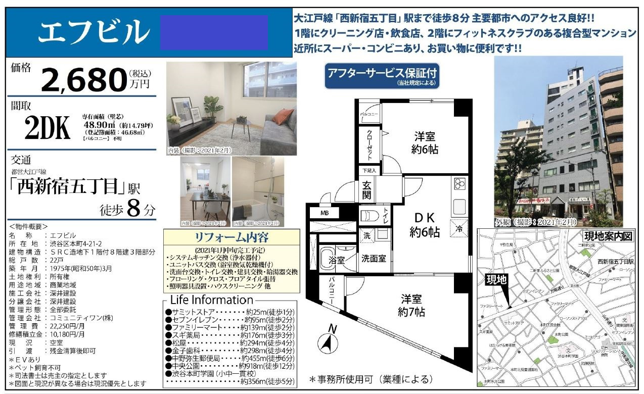 本日、渋谷区本町4丁目のマンション「エフビル」をご契約いただきました。
