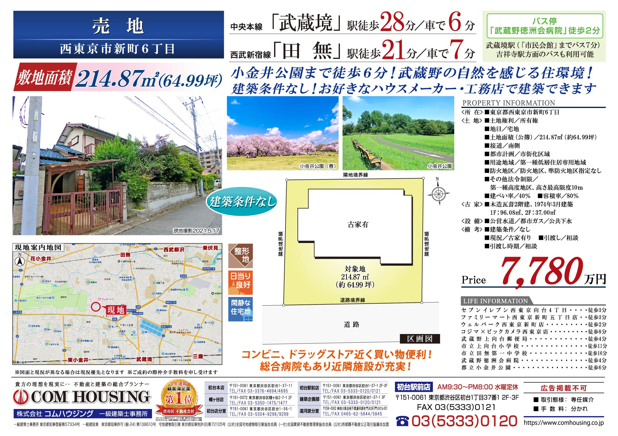 コムハウジング > 株式会社コムハウジングのスタッフブログ記事一覧 > 【成約御礼】西東京市新町売地