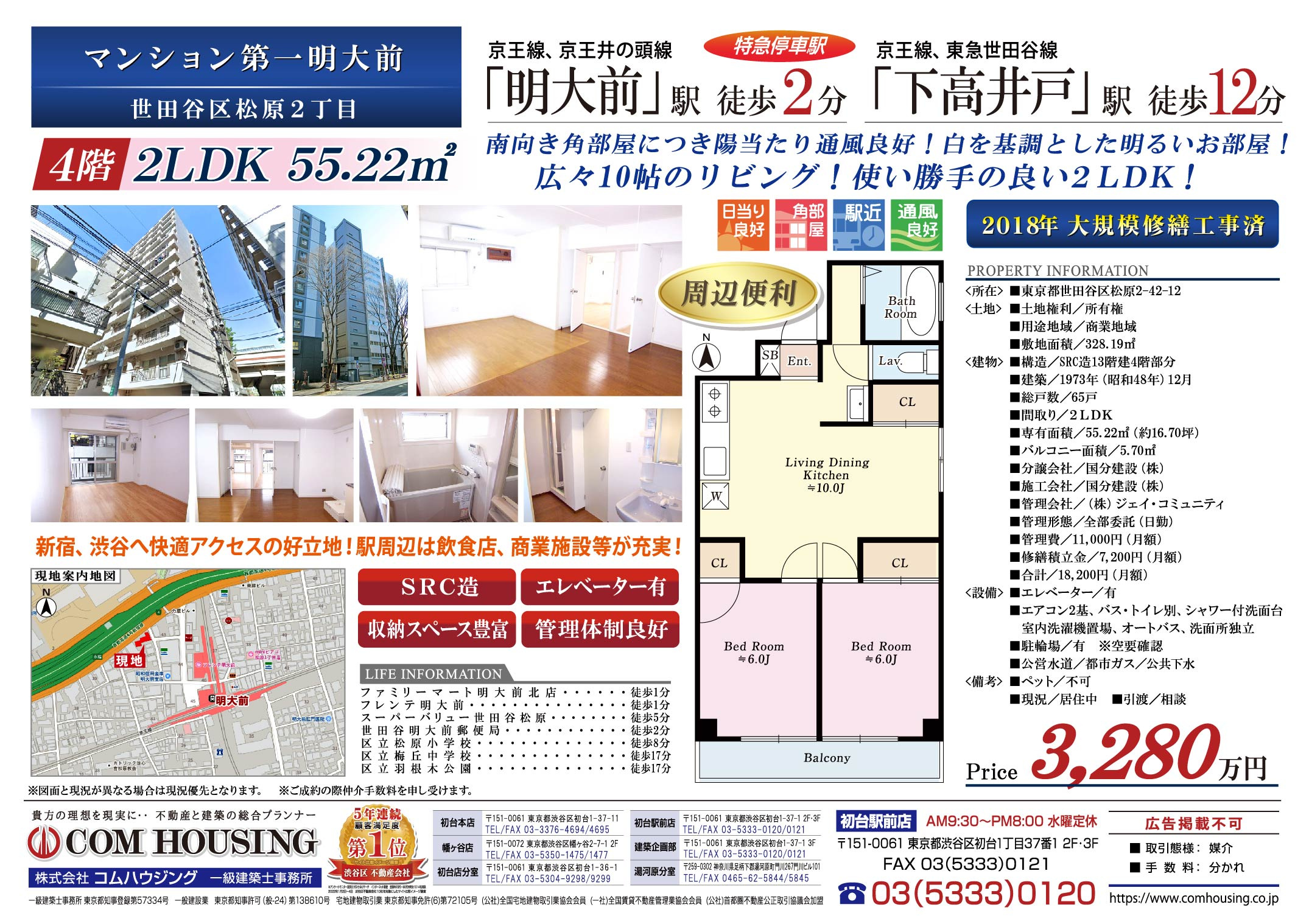 コムハウジング > 株式会社コムハウジングのスタッフブログ記事一覧 > [新規お預かり物件]マンション第一明大前4階|3,280万円