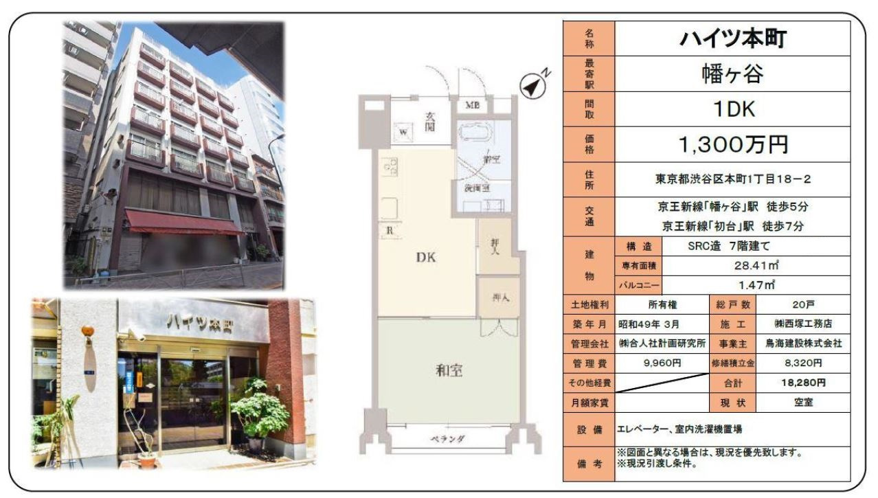 本日、渋谷区本町1丁目のマンション「ハイツ本町」をご契約いただきました。