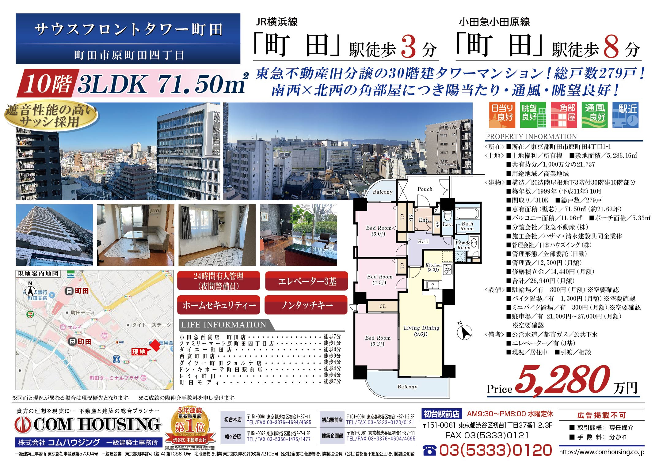 新たに売主様よりお預かりをした町田市原町田4丁目のマンション「サウスフロントタワー町田10階|5,280万円」をご紹介いたします。